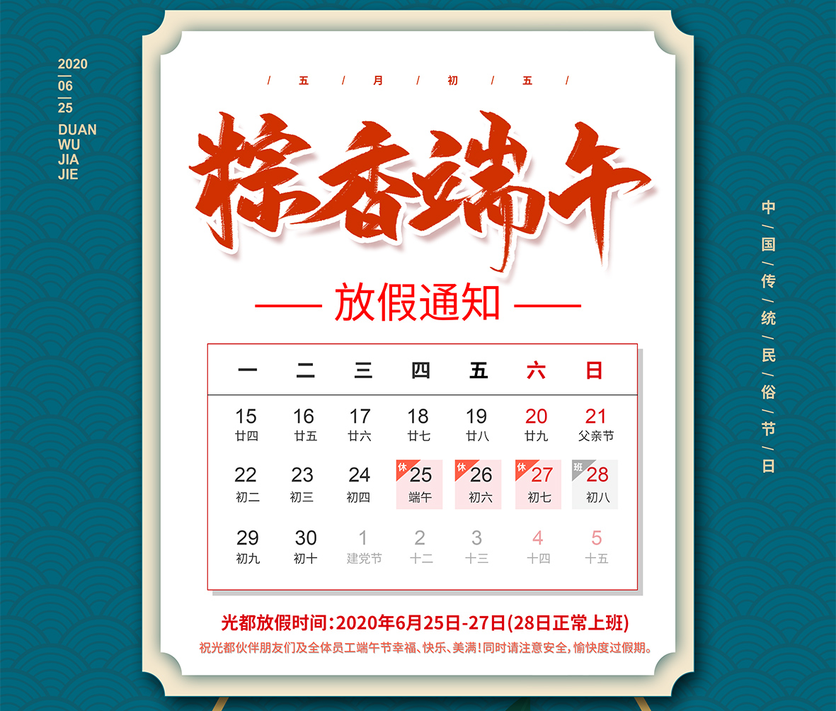 温馨提示:光都中秋国庆放假时间为10月1-6日,2020爱您们哦~!万家团圆迎中秋,四海欢腾庆国庆!值此双节来临之际,光都全体员工恭祝伙伴朋友们中秋快乐,阖家幸...