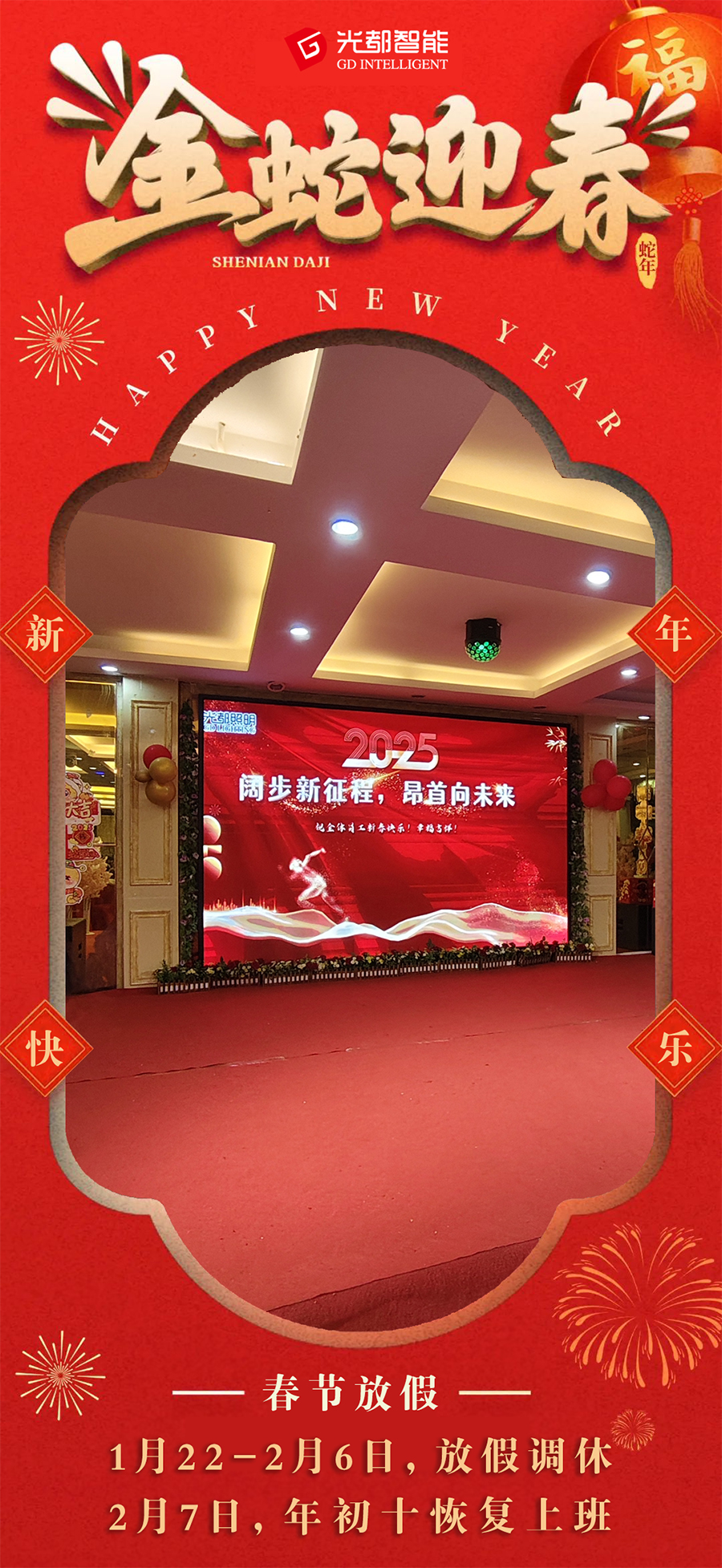 我们即将辞别严峻的2024 跨入充满未知和希望的2025 春节钟声即将鸣响,幸福时刻已然到来 全体光都人在此给大家最热忱的新年祈福 千淘万漉虽辛苦,吹尽黄沙始到金 愿大家在新的一年里顺心如意、诸事顺遂!