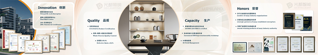 光都定位为艺术智家灯光服务商,立足于“定制”市场,形成以“定制+”为战略核心的行业生态。光都在惠州有2万多平生产基地,200多名员工,拥有LED灯光和智能配件全产业链,专注家居照明21年,自主方案、自行设计、自有工厂,产品畅销50多个国家和地区,品质经全球市场认证,光都累计达100多项专利,200多份资质证书,通过ISO9001和BSCI双认证。