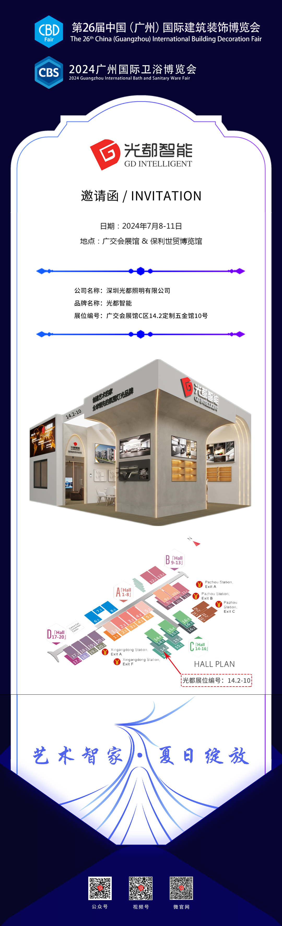 艺术智家&万物智联,现在 · 开启您的智慧生活!光都智能三年磨一剑,7月8-11日携家居照明和智能家居隆重亮相第26届广州建博会,展位号:C区14.2-10,欢迎家人们抽空莅临指导!