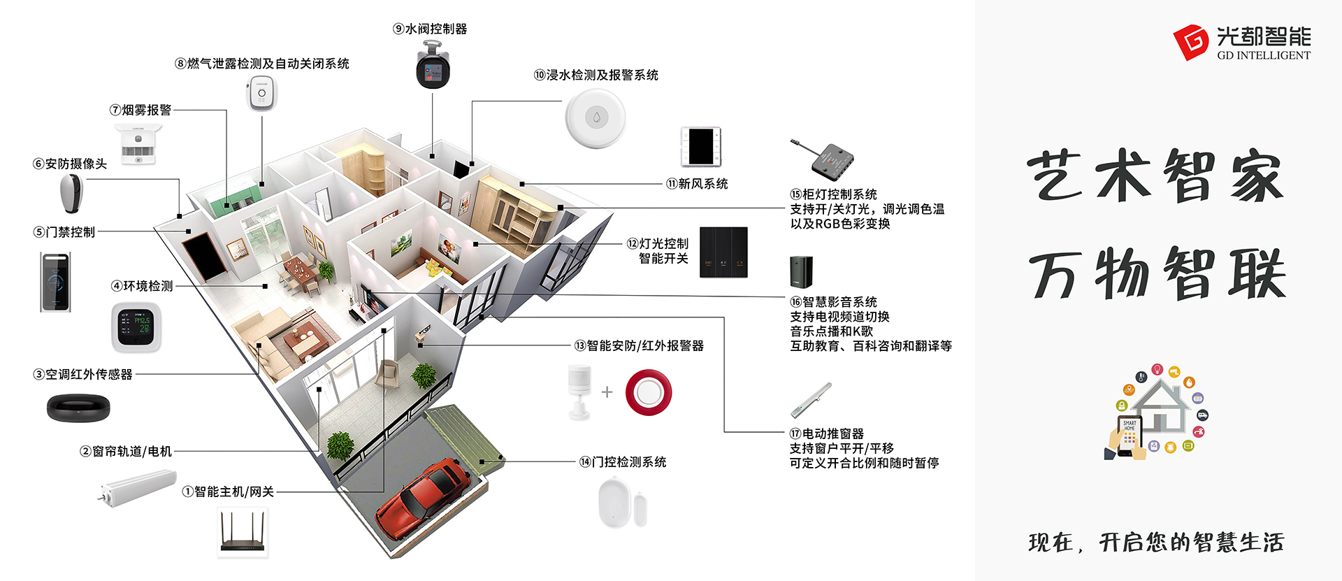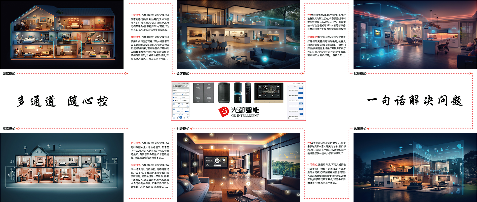 全案智能,无感智能,随心智能,光都智能家居自主研发系统,云端AI加持,本地布置智能主机,通过Zigbee+WIFI全覆盖,多通道掌控,如臂使指,一句话解决问题!