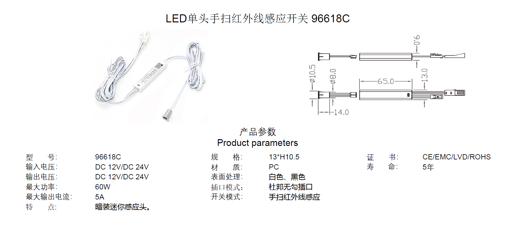 LED单头手扫红外线感应开关 96618/B